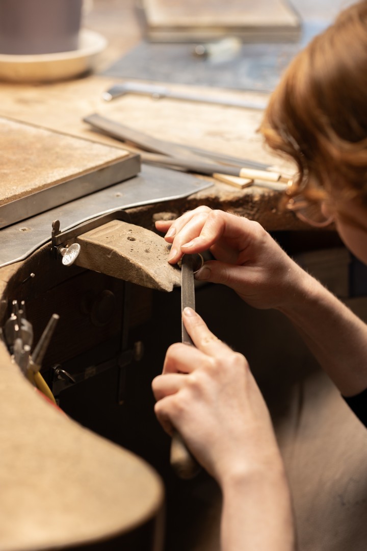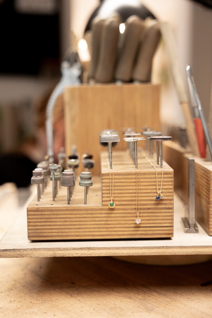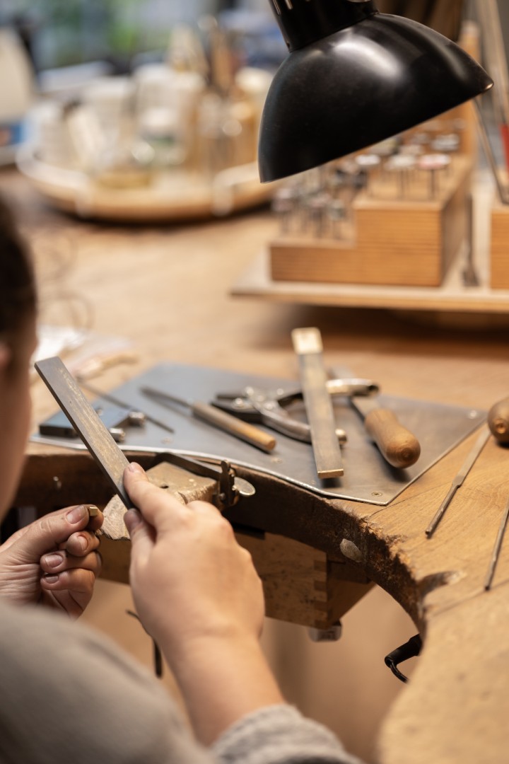 In einem hübschen Gründerzeithaus im Stuttgarter Westen finden Sie meine eigene Kollektion und ausgewählte Schmuckstücke anderer Designer/innen. Nebenan hören Sie in der Werkstatt feines Klopfen und Hämmern. Sie dürfen uns gerne bei der Arbeit über die Schulter schauen. In unserem Atelier können Sie sich beraten lassen und noch tiefer in unsere Schmuckwelten eintauchen.